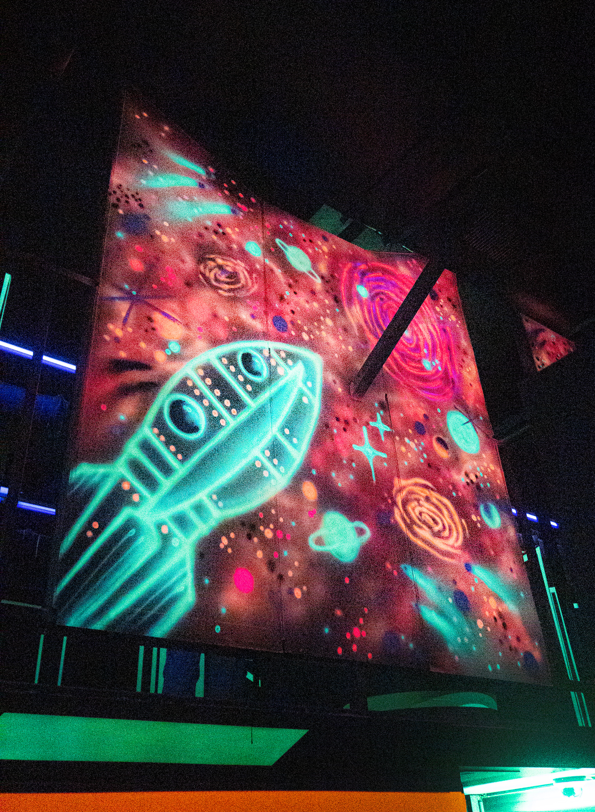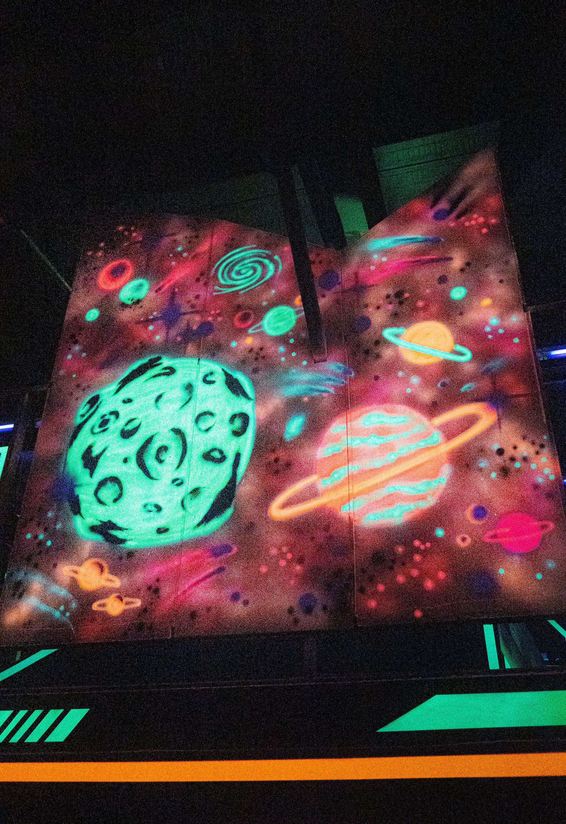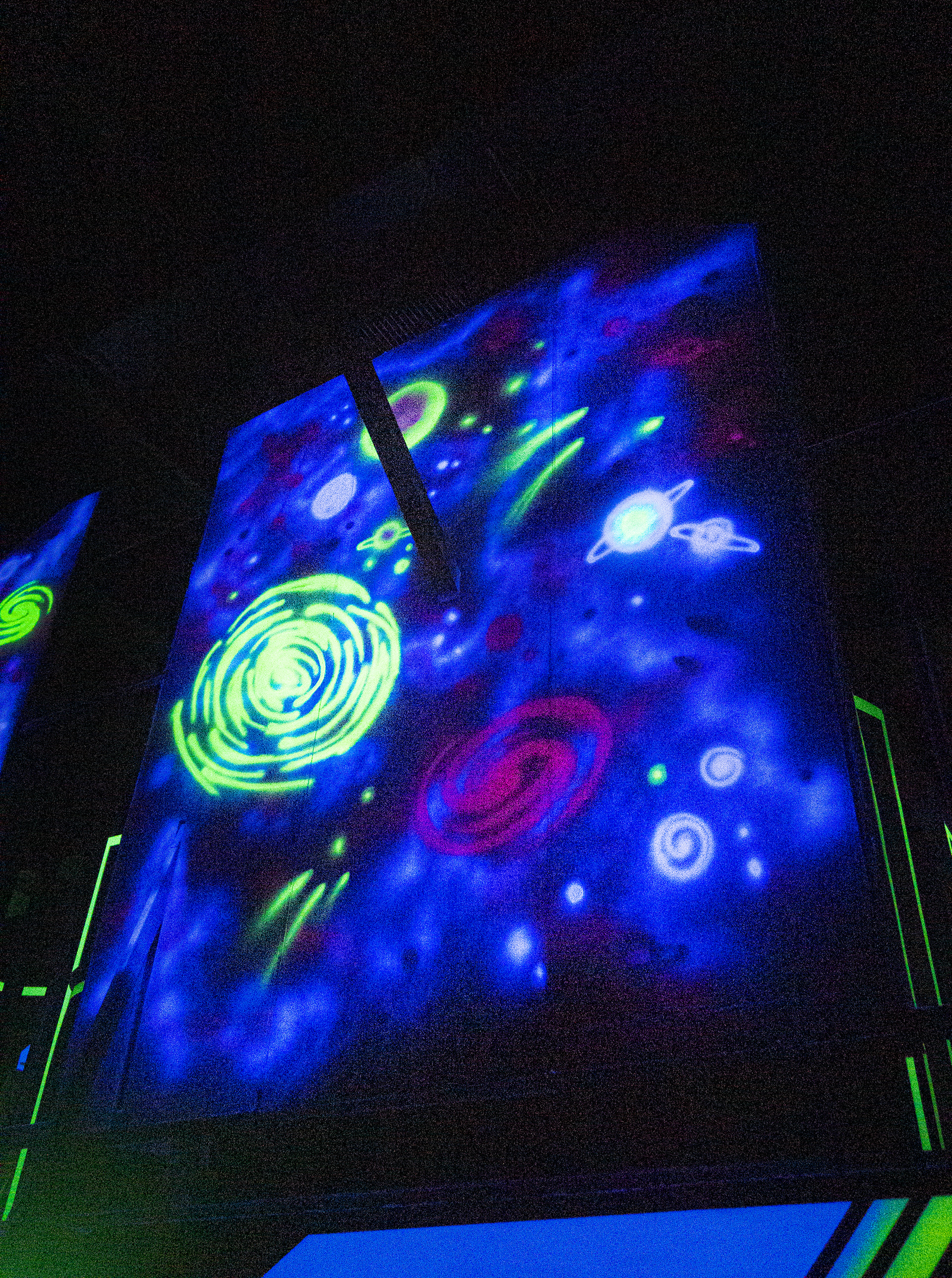 형광 스프레이를 활용해 우주를 담았습니다. 수원 영통 판타지움 3층에서 만나보세요!