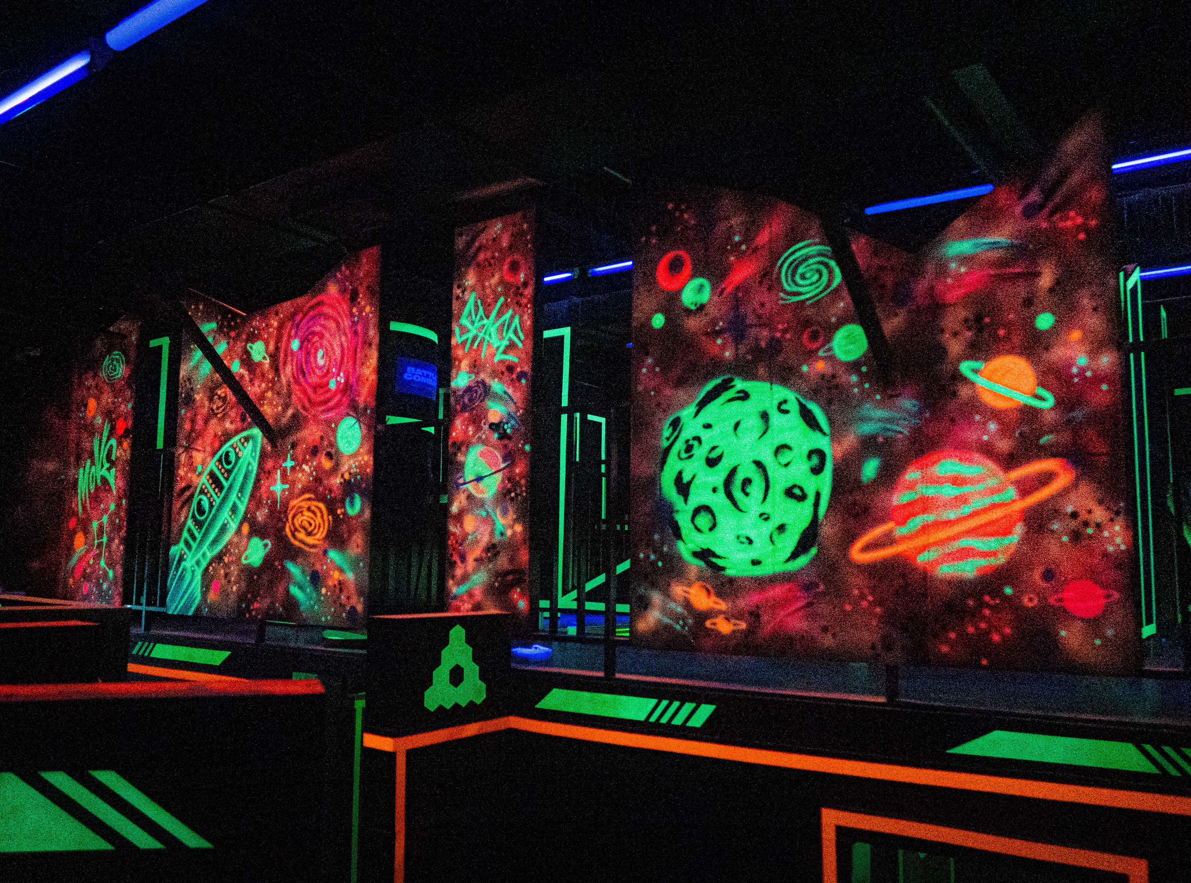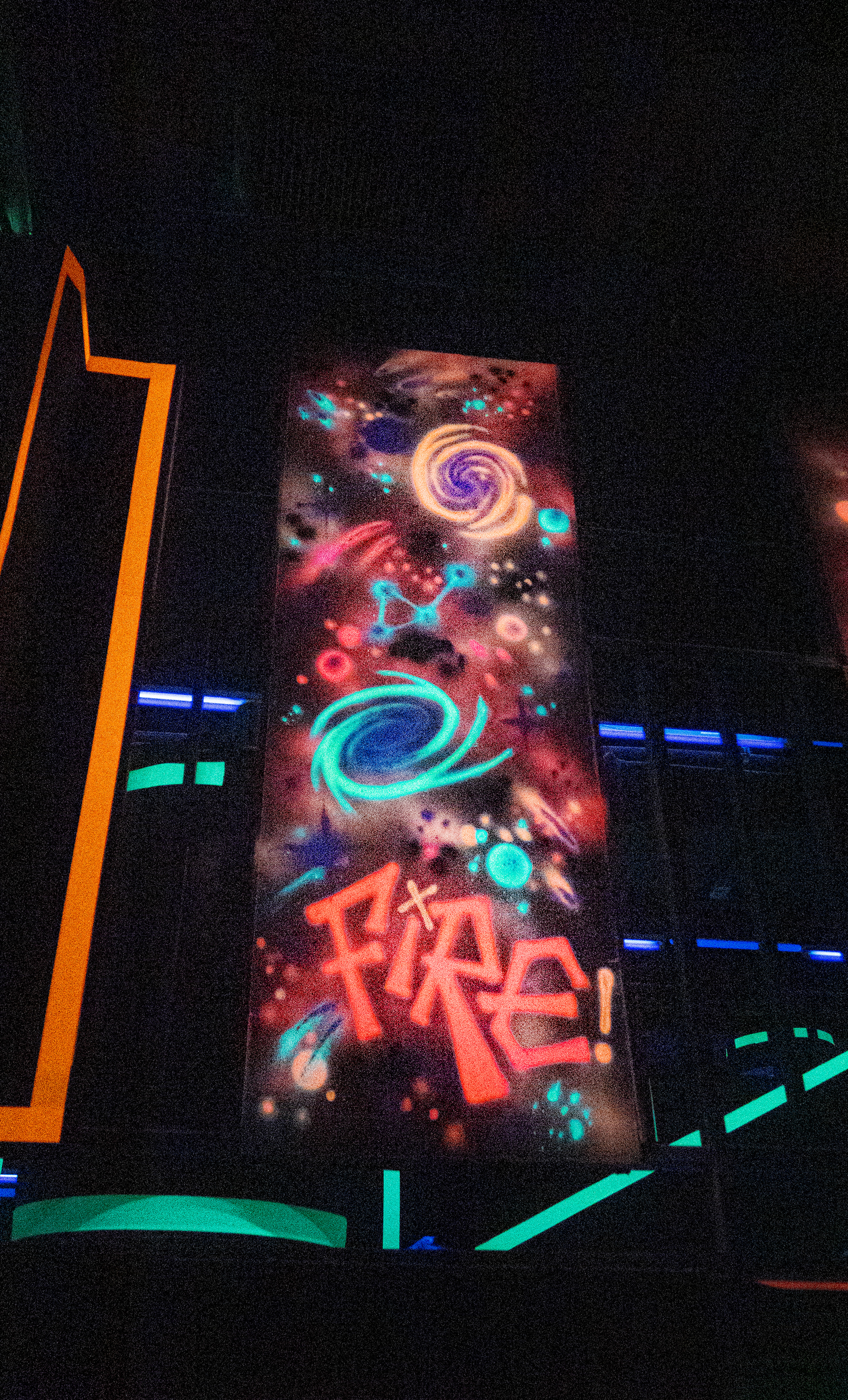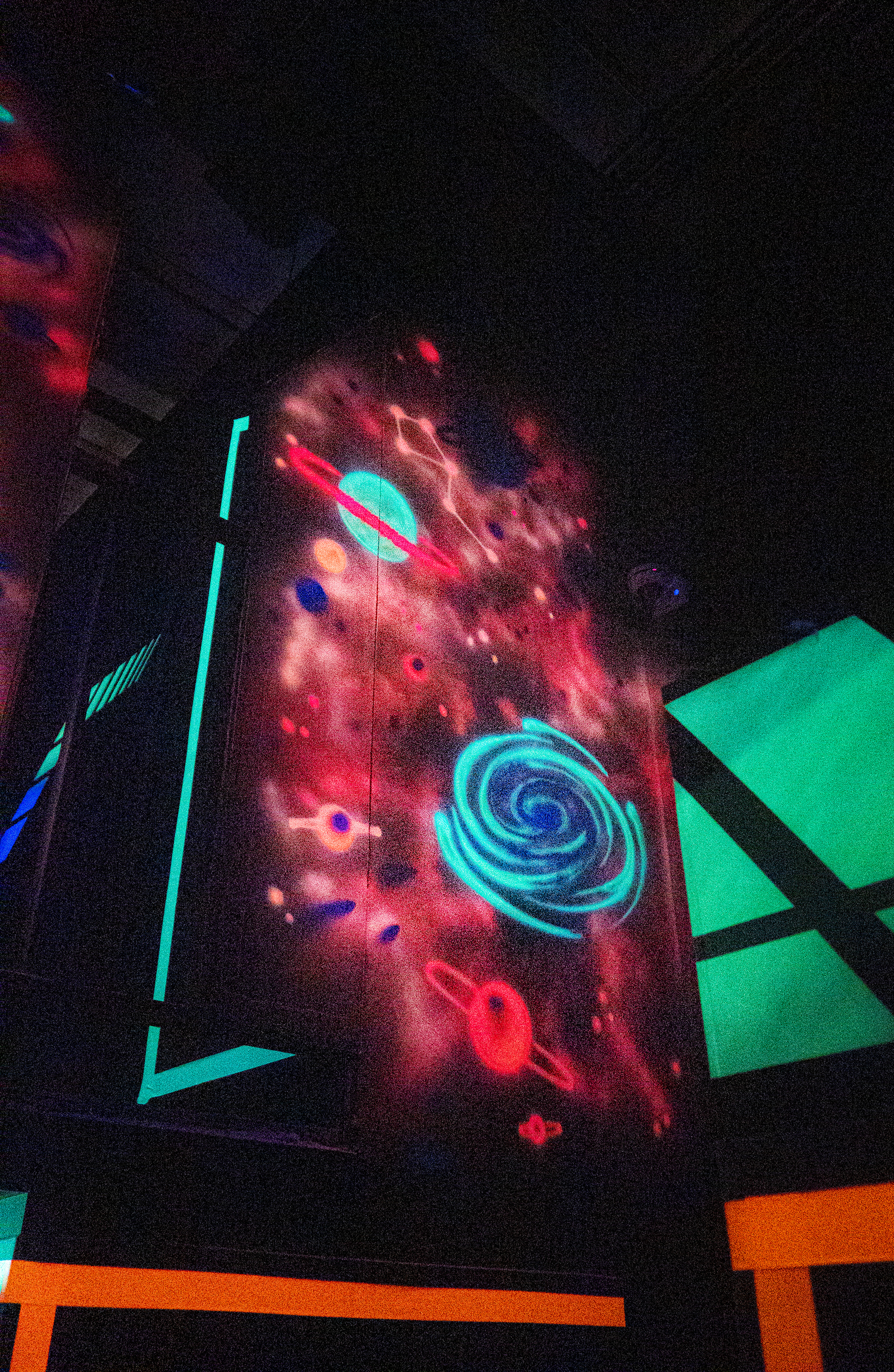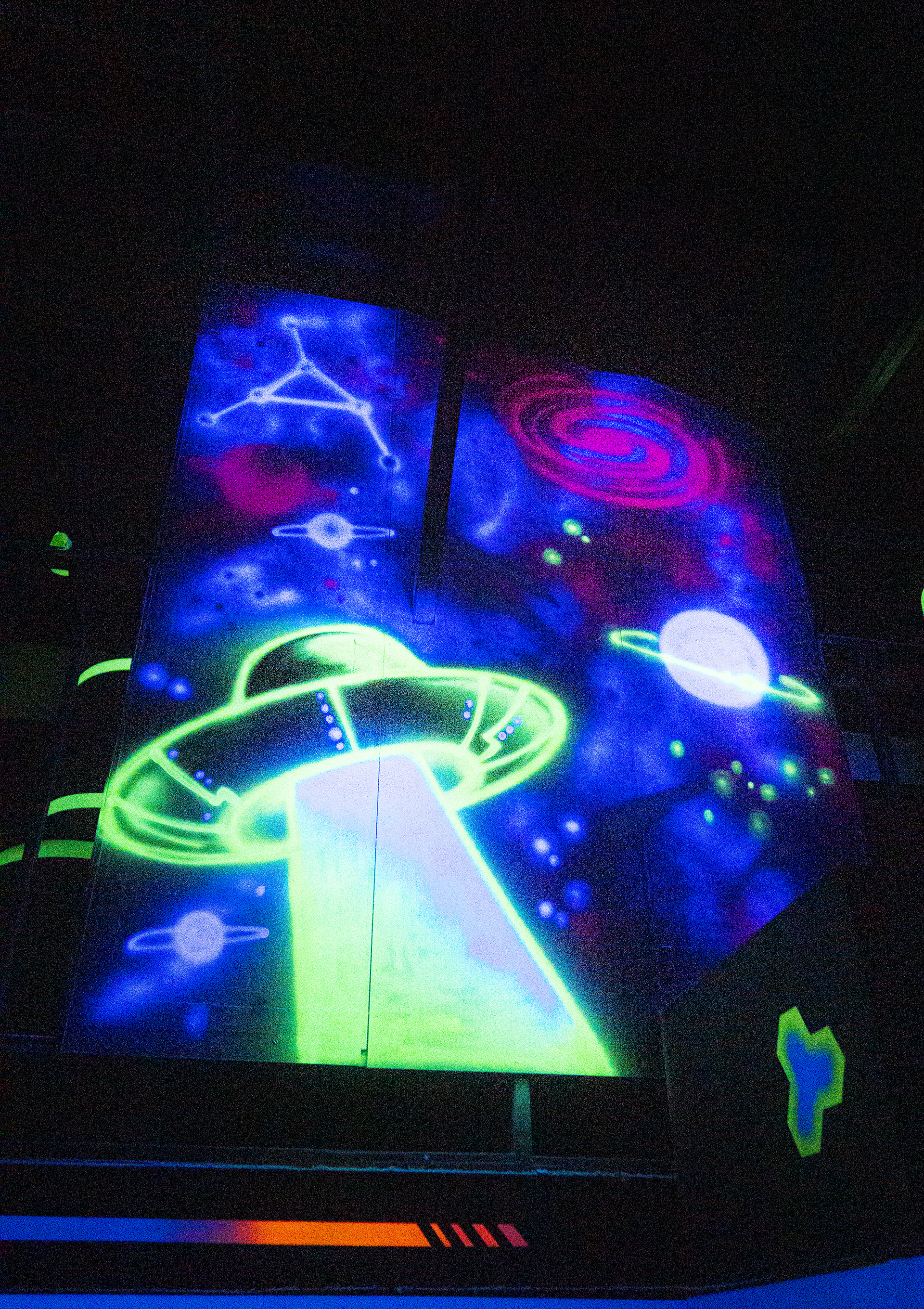 형광 스프레이를 활용해 우주를 담았습니다. 수원 영통 판타지움 3층에서 만나보세요!