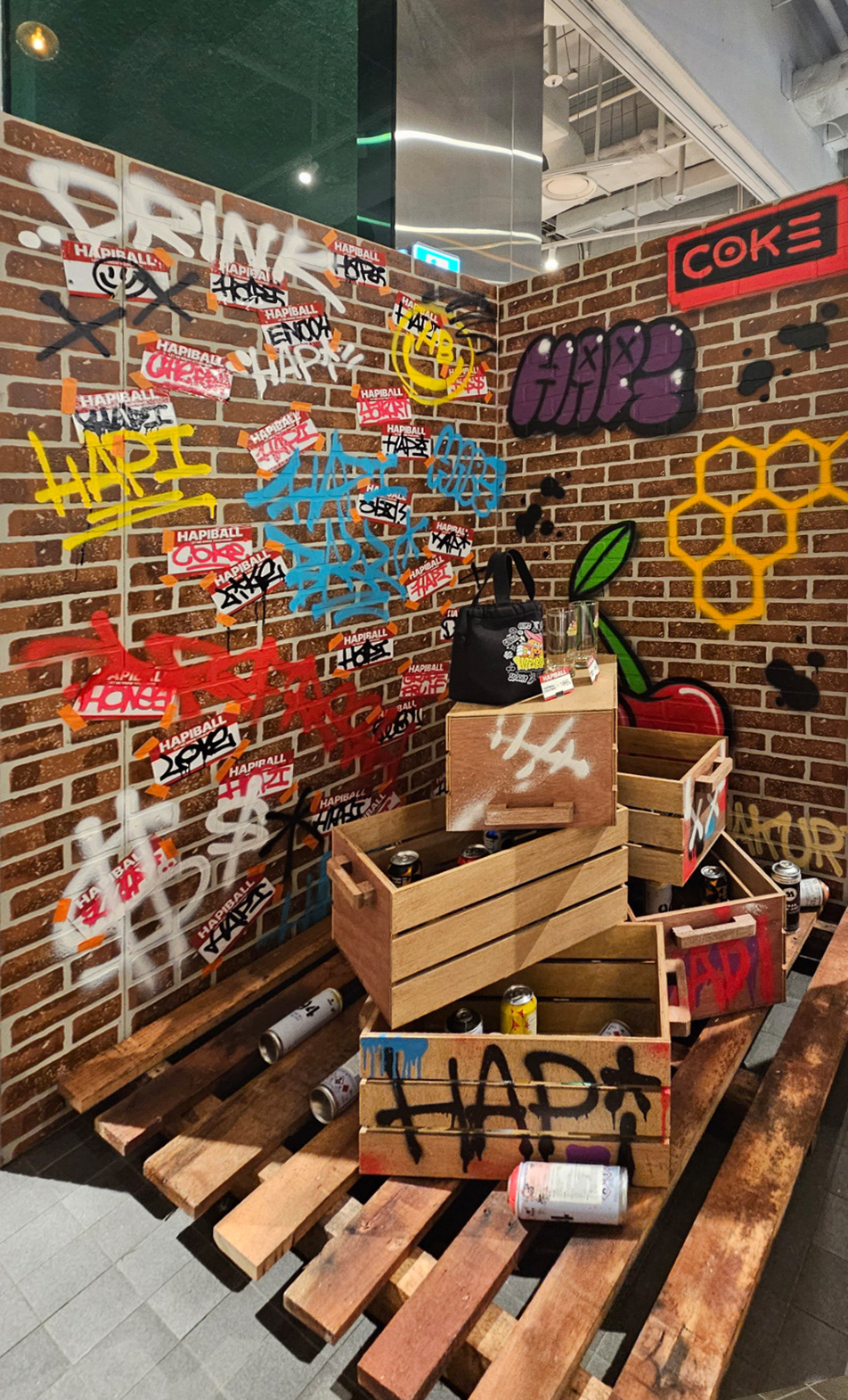더현대서울에서 진행하는 <HAPIBALL>의 팝업 스토어를 위한 다양한 그래피티 아트웍을 진행했습니다.