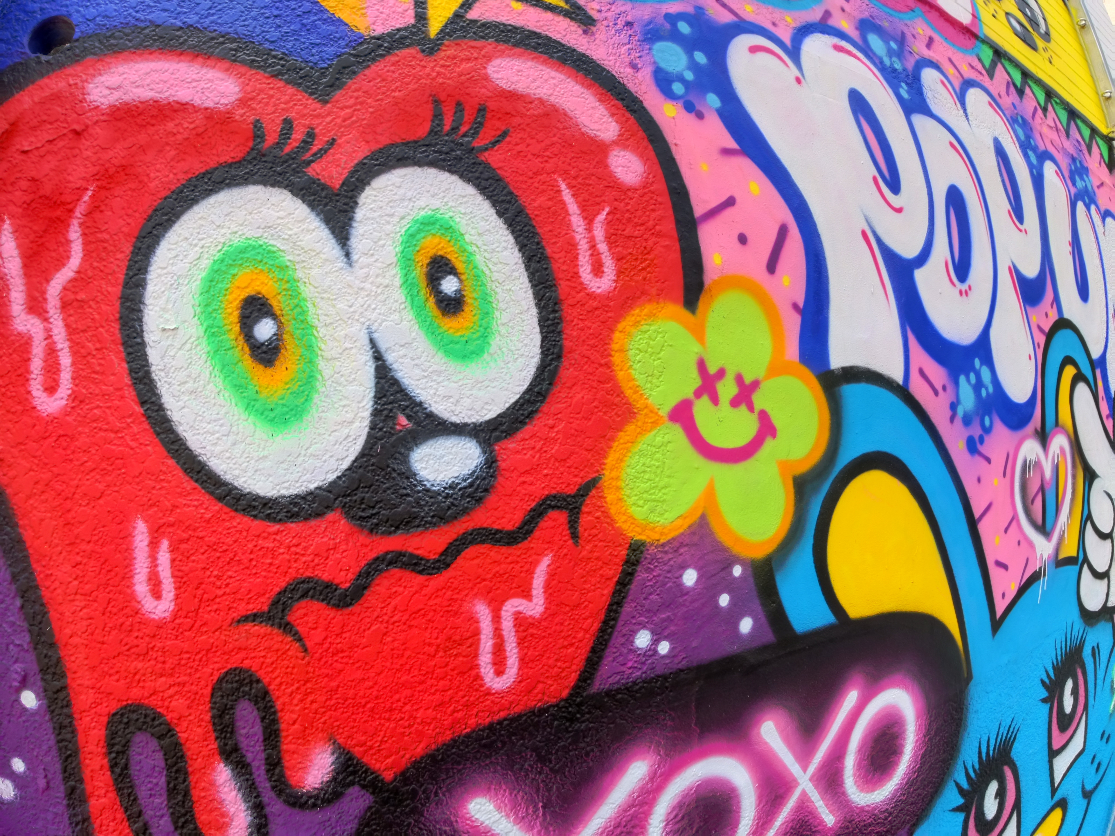 다양한 캐릭터와 레터링, 알록달록한 색감을 활용한 멀리서도 돋보이는 스타일의 아트웍입니다🥰✨️🦖