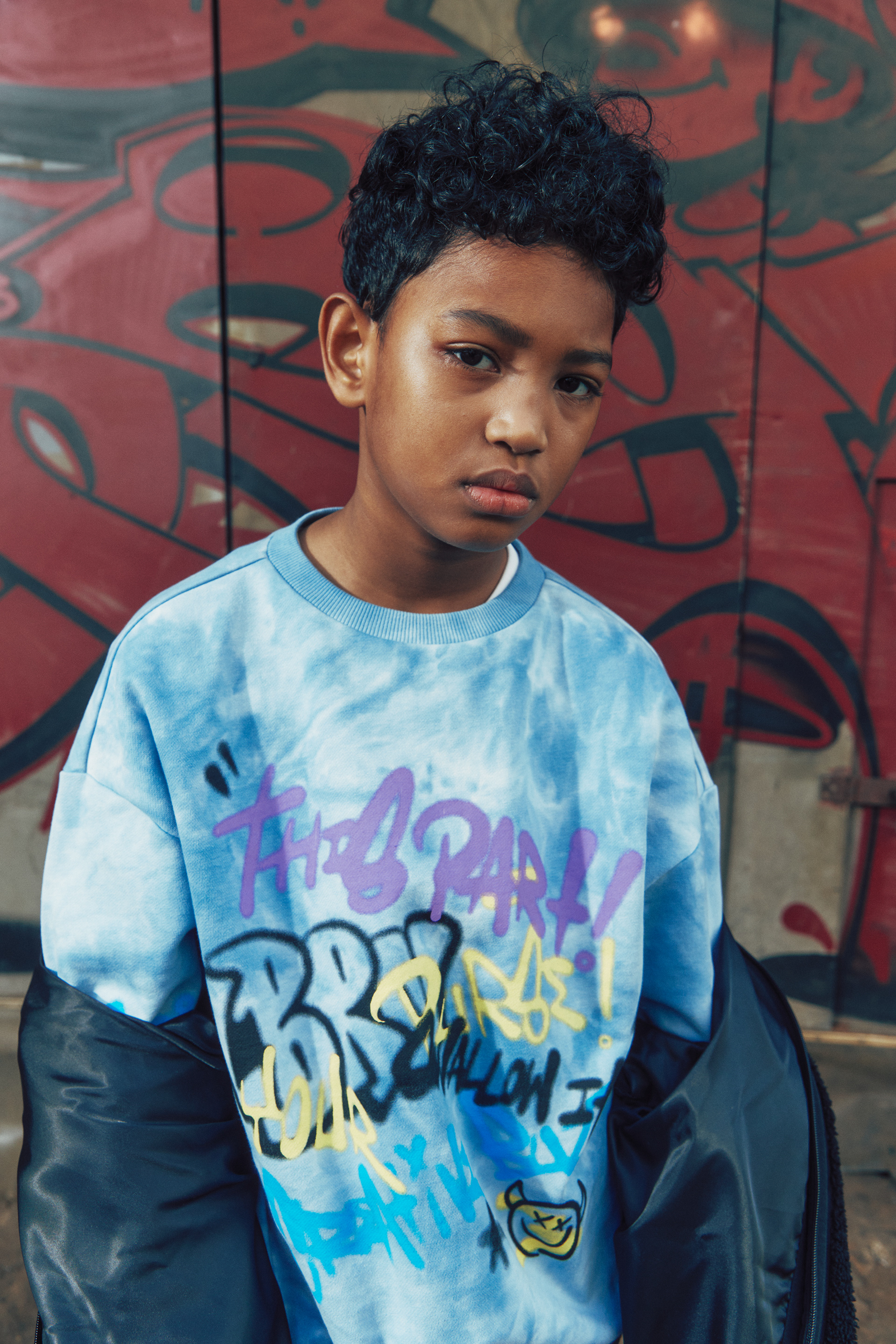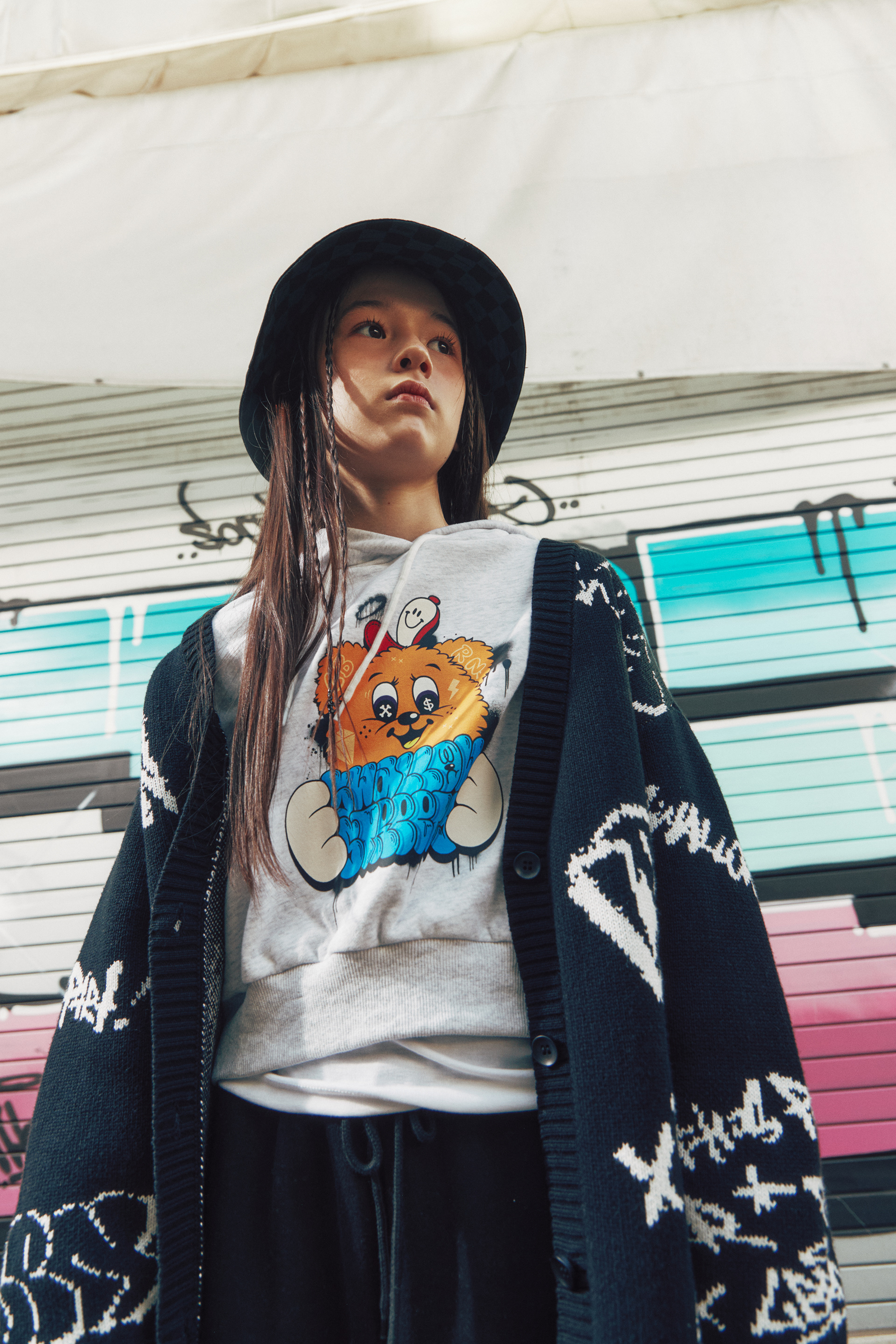 주니어 브랜드인만큼 귀엽고 키치한 캐릭터와 컬러풀한 색감을 활용한 그래피티 아트웍을 준비했습니다.