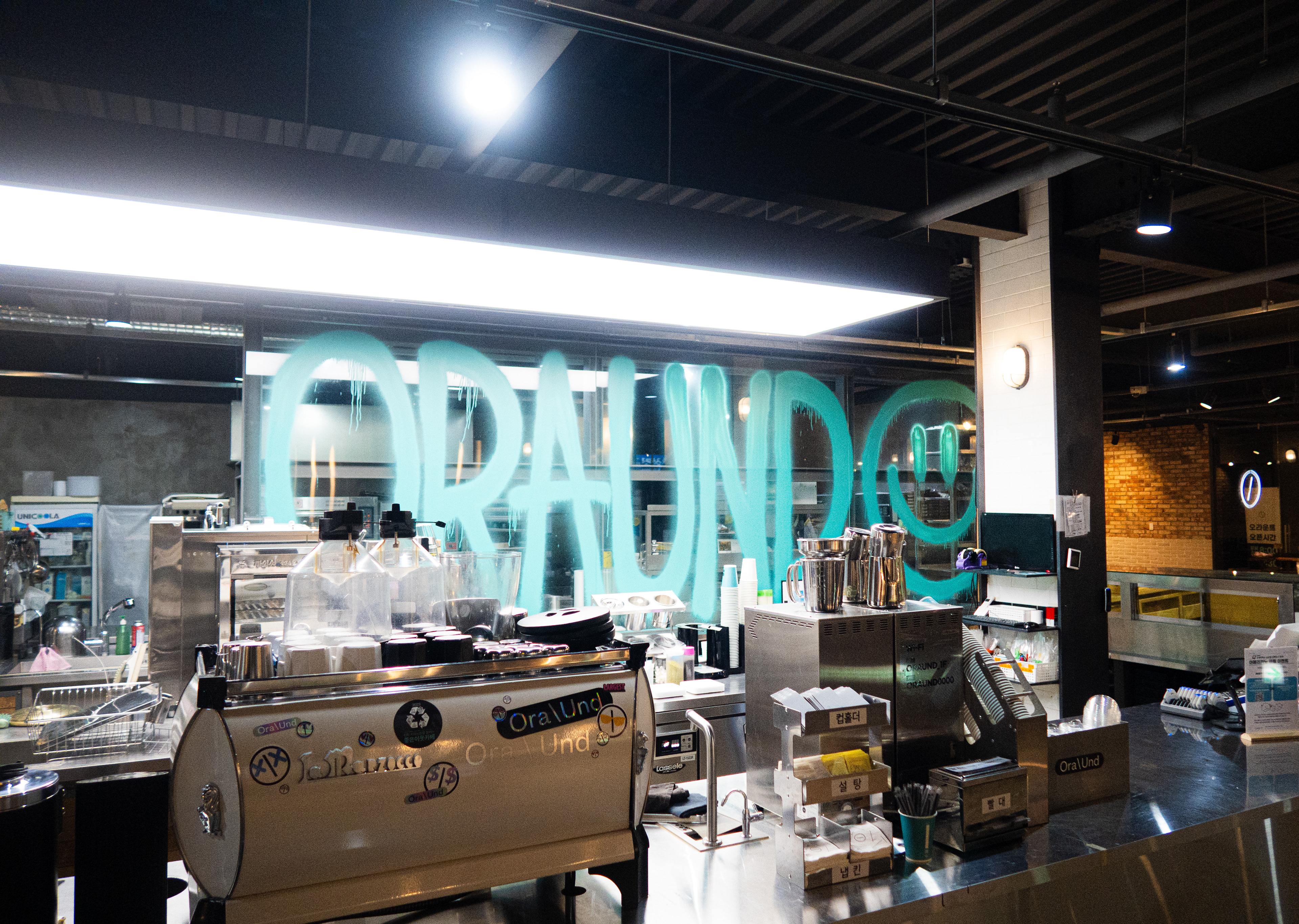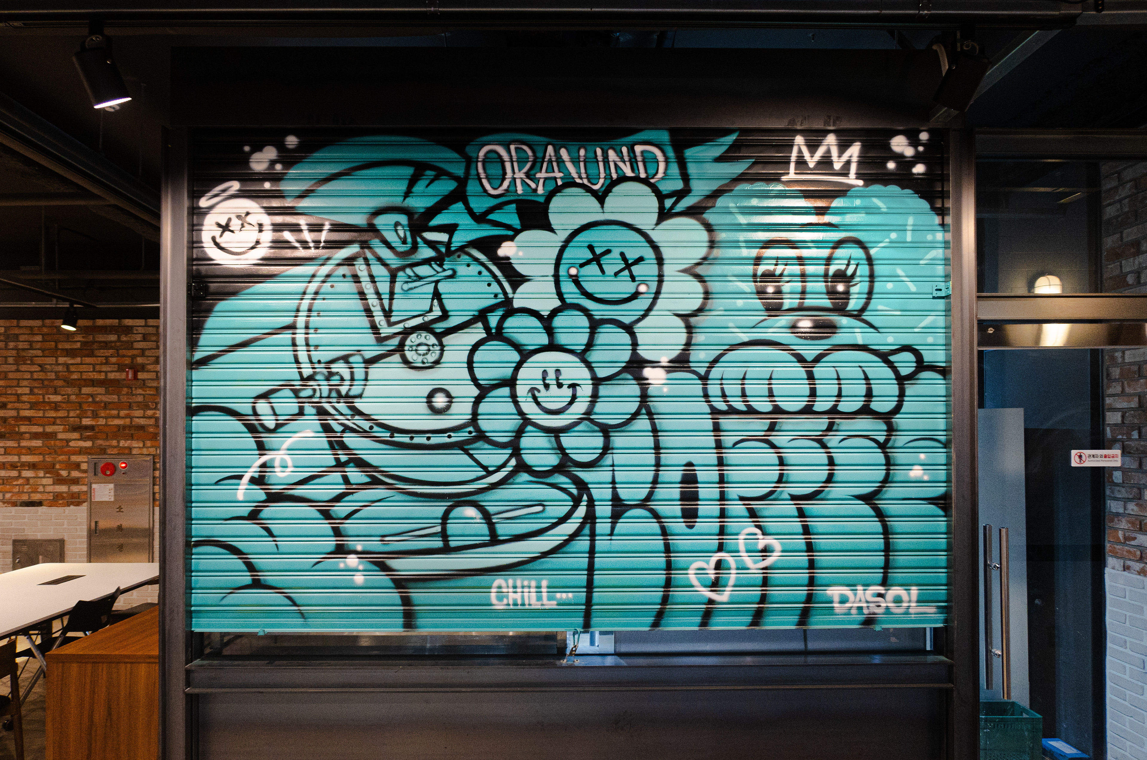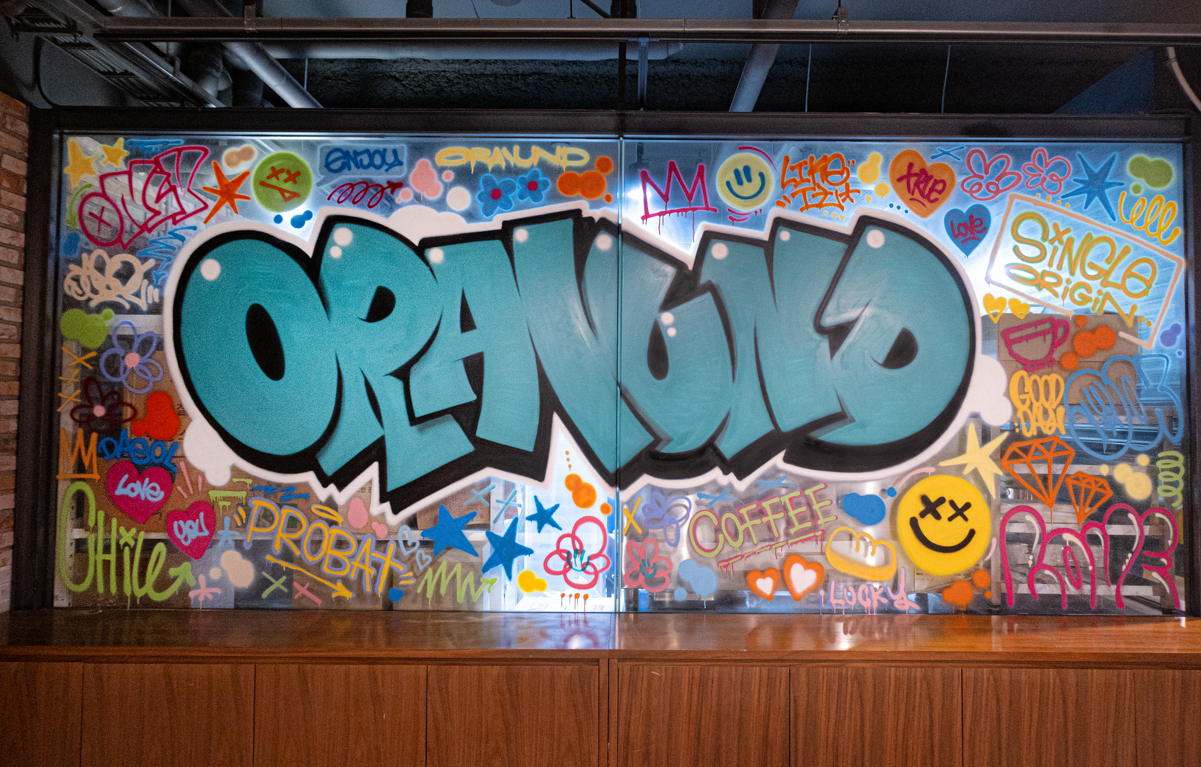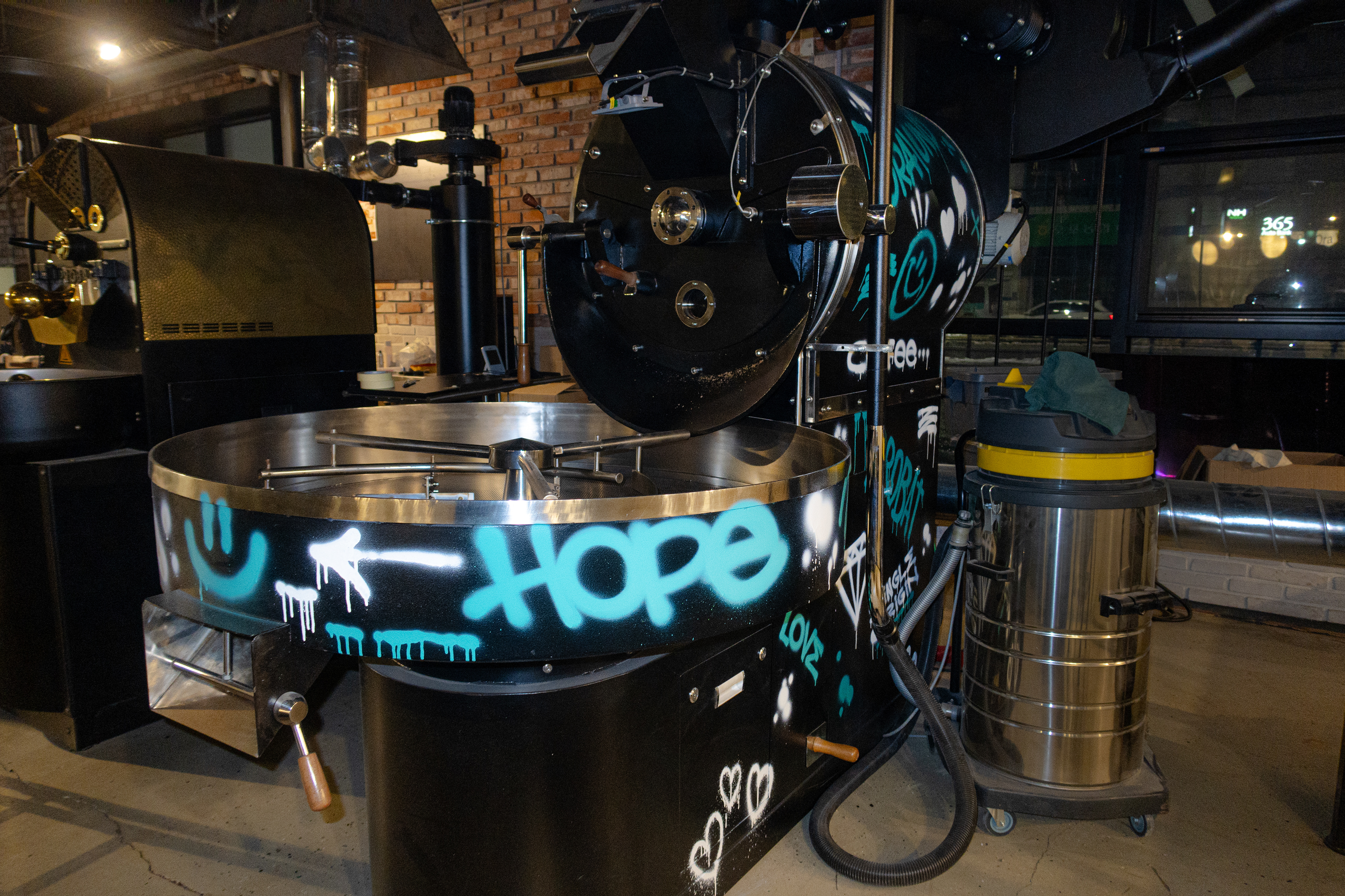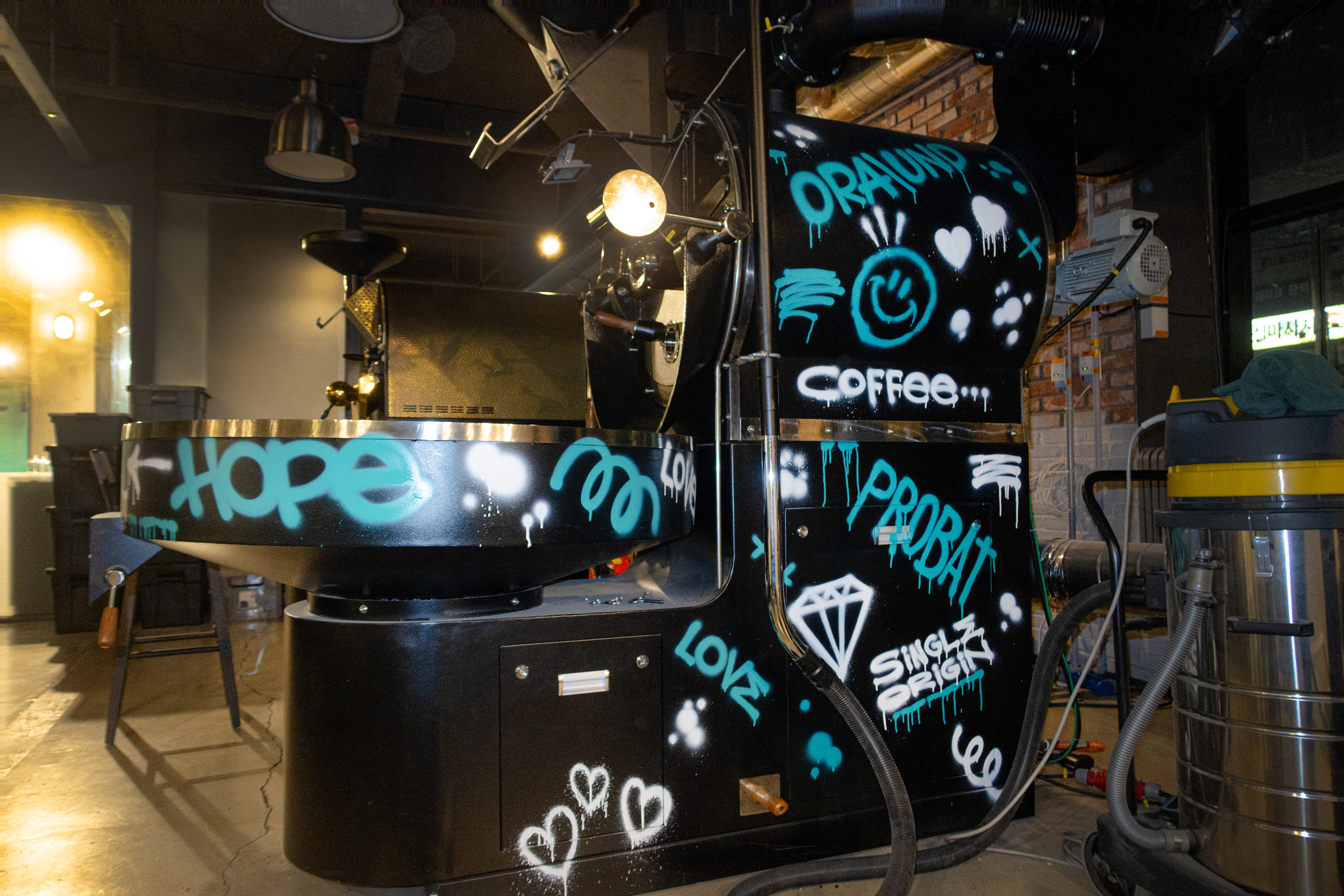 매장 내부 및 외부, 로스팅기 등 다양한 곳에 작품을 남겼습니다.