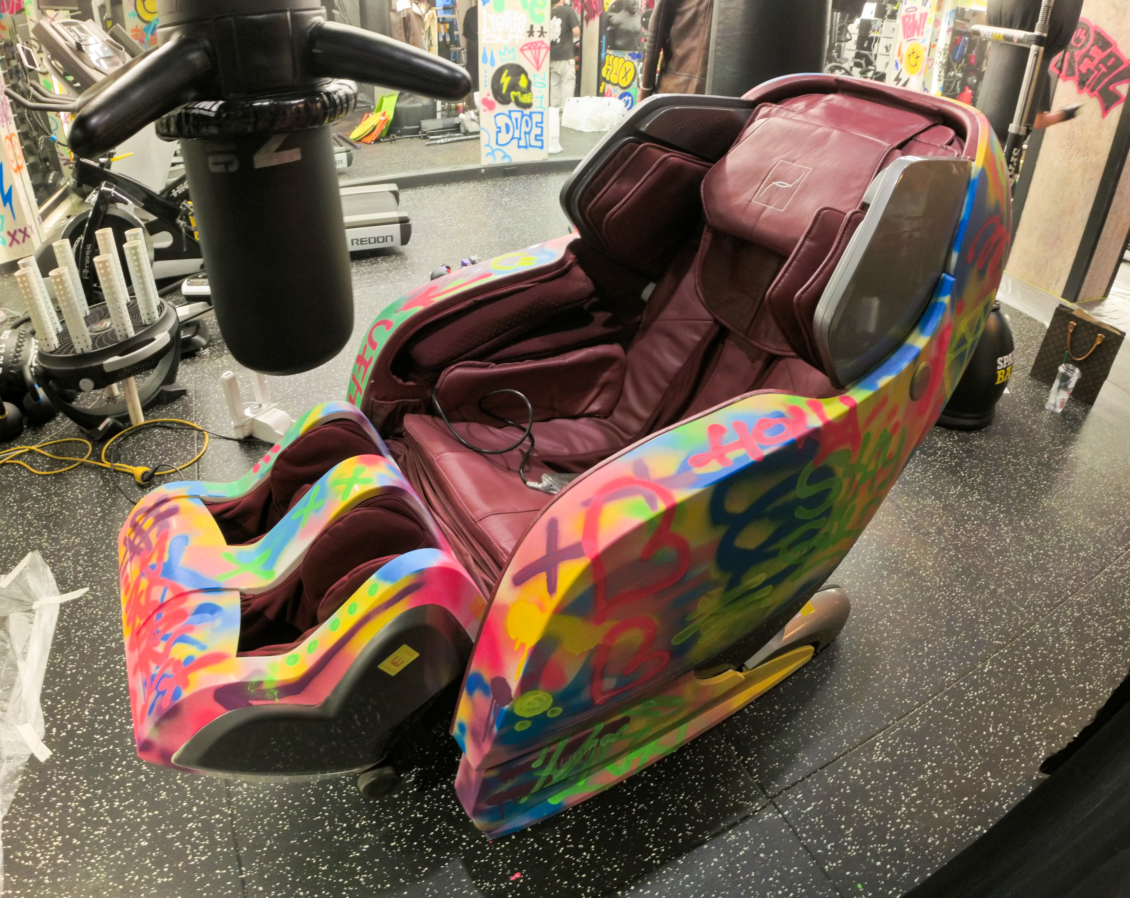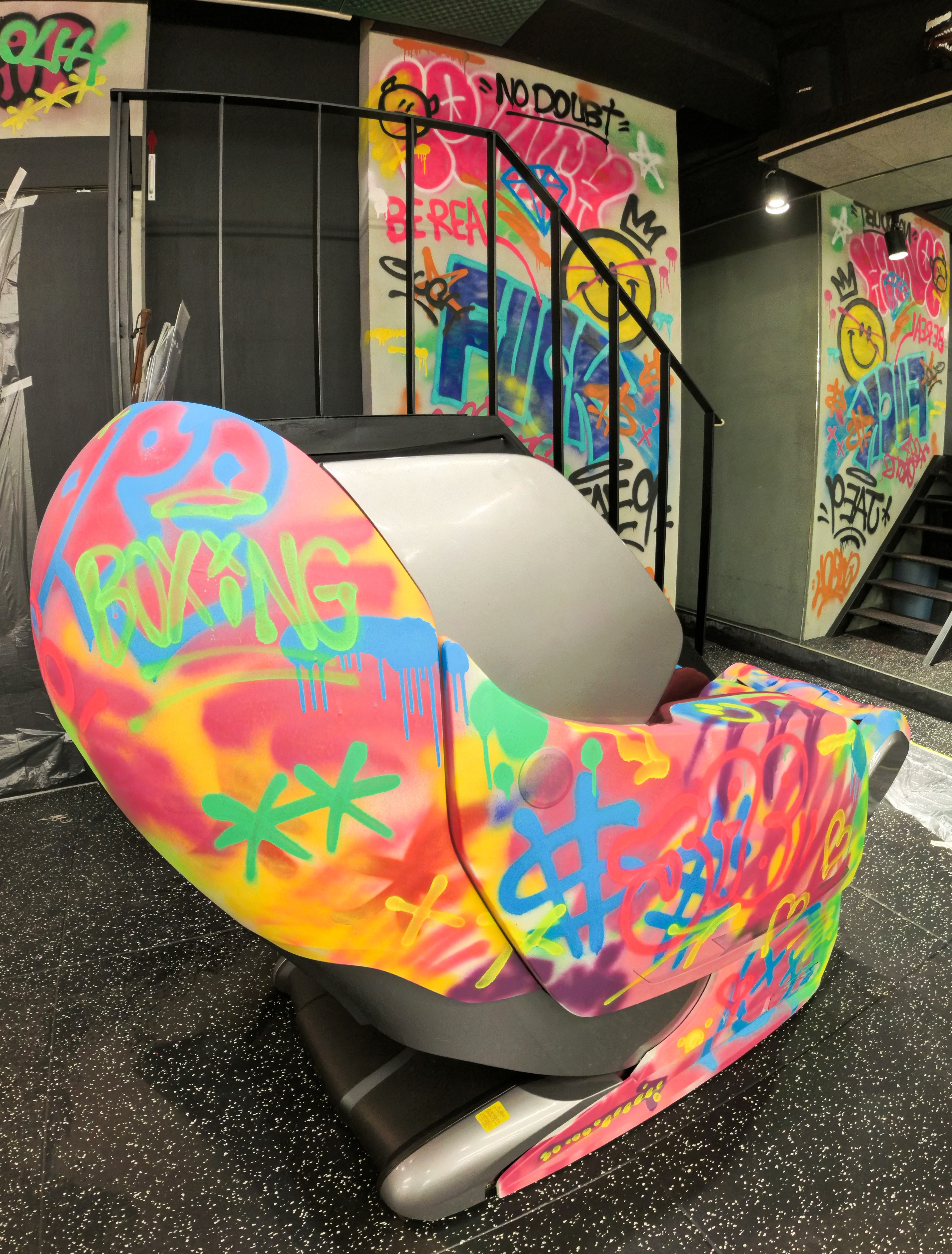 안마의자에도 알록달록한 색감으로 커스텀 작업을 진행했습니다.