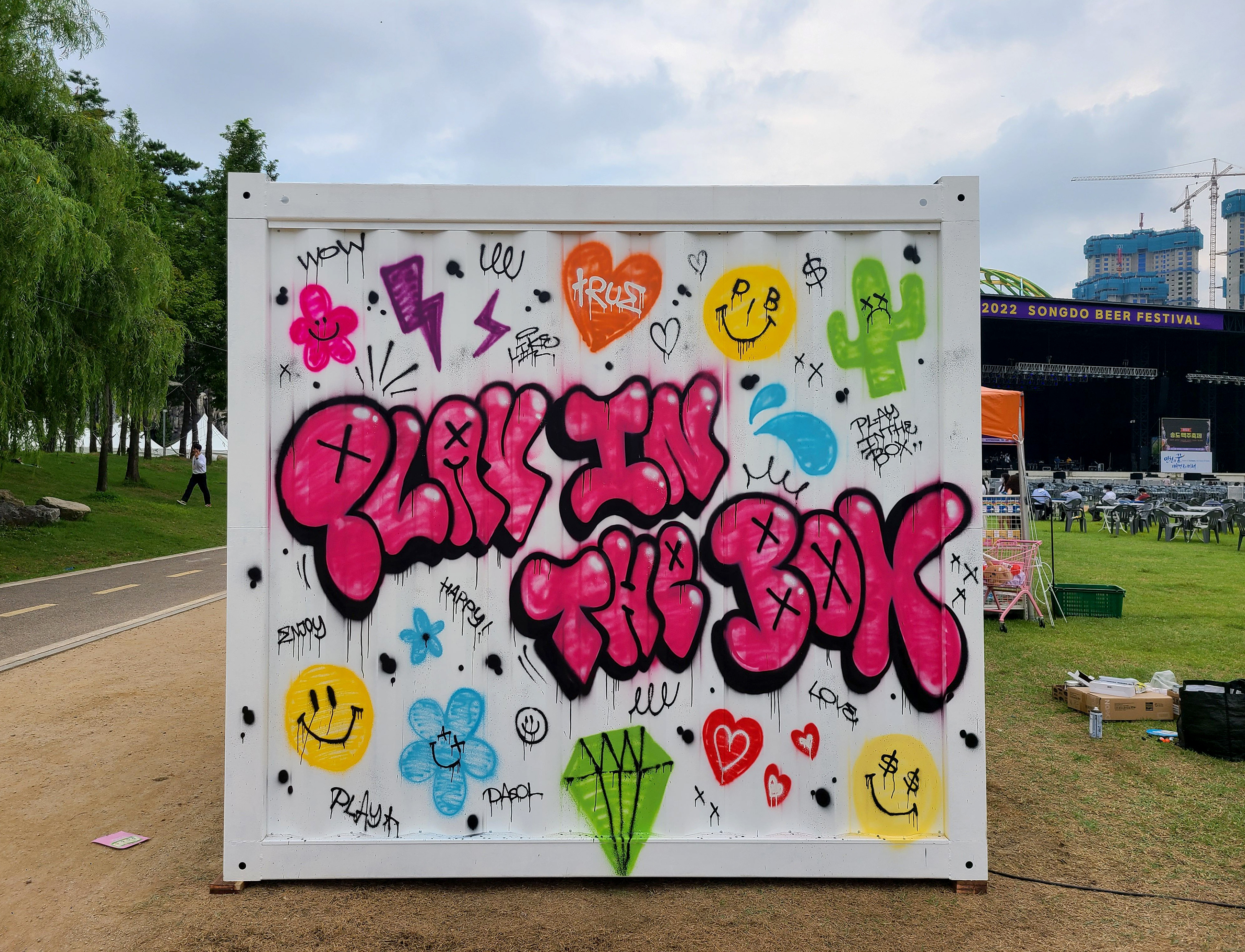 2022 송도맥주축제에 참가한 Play In The Box 부스에 아트웍을 남기고 왔습니다.