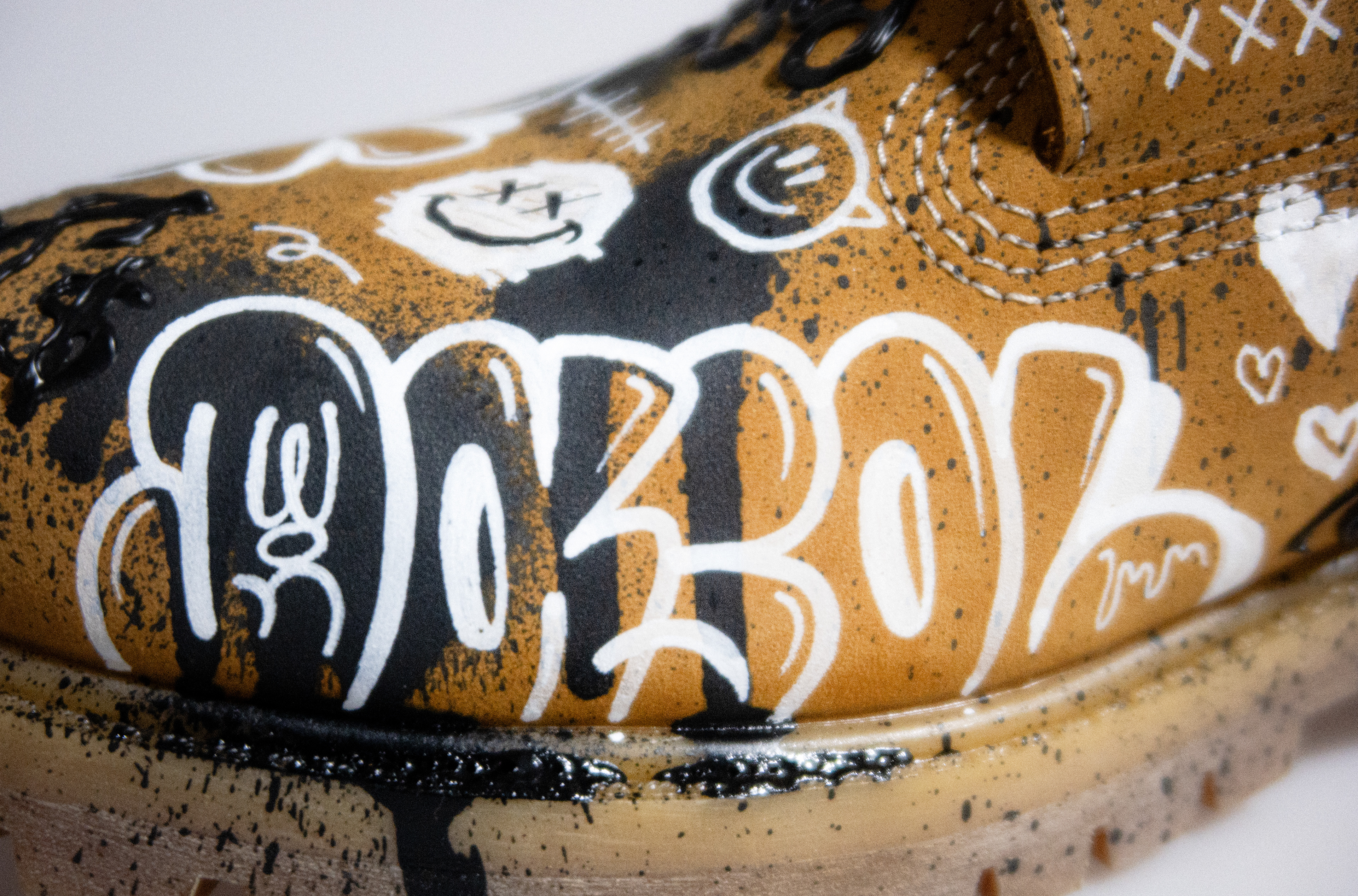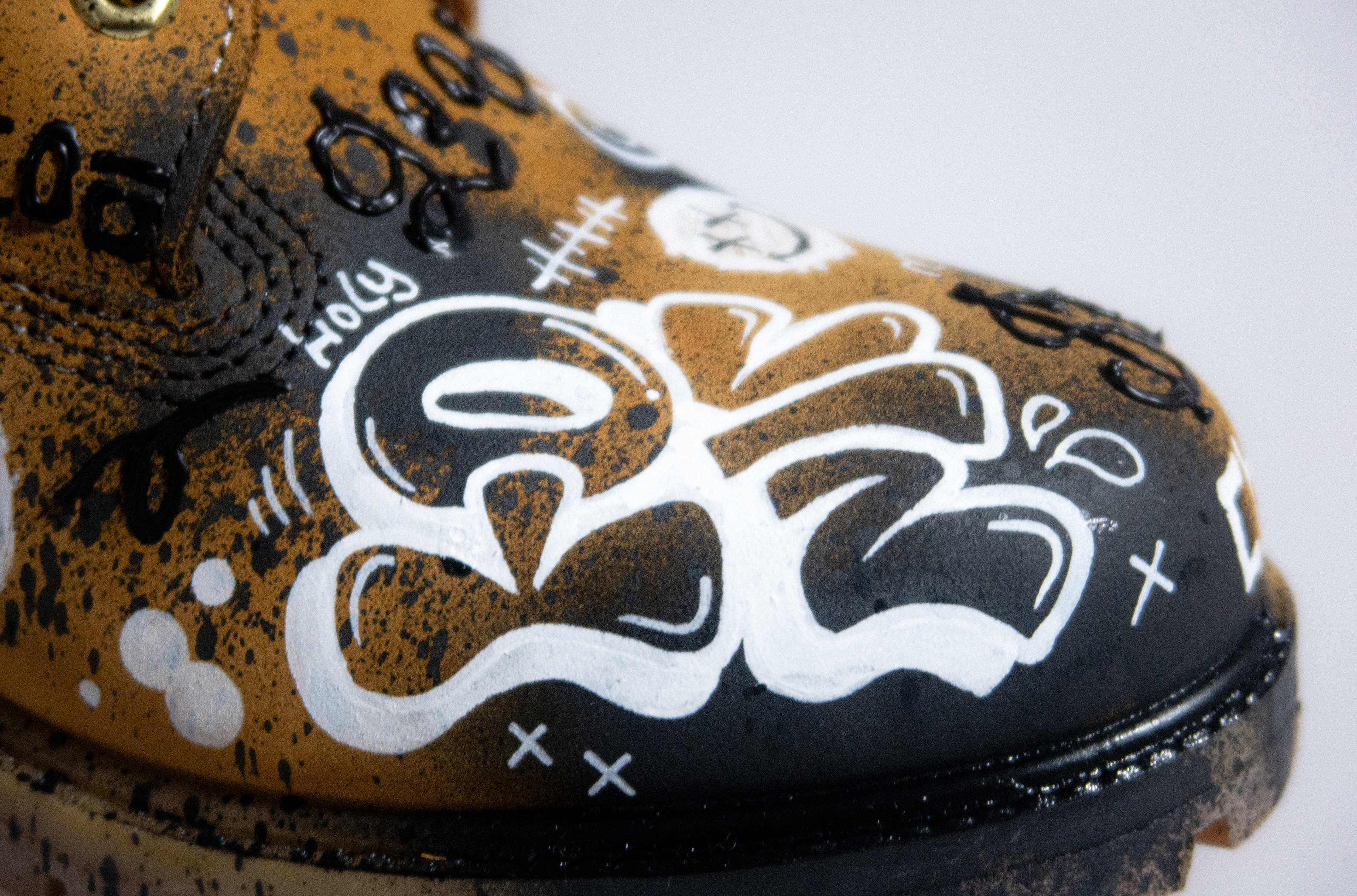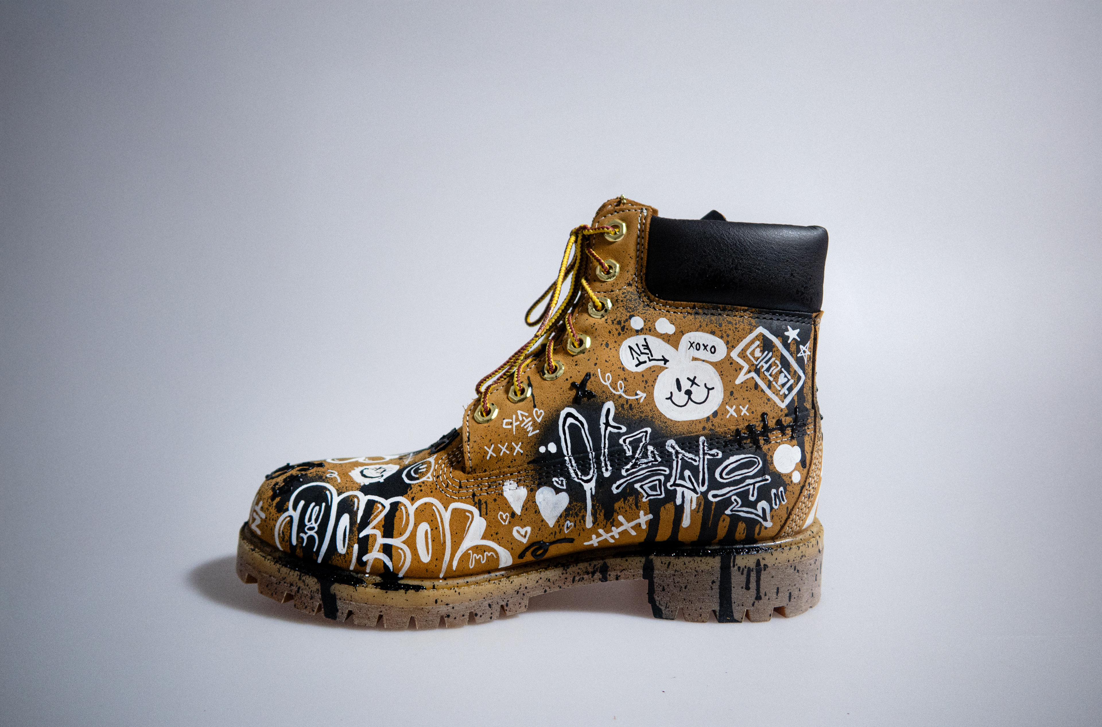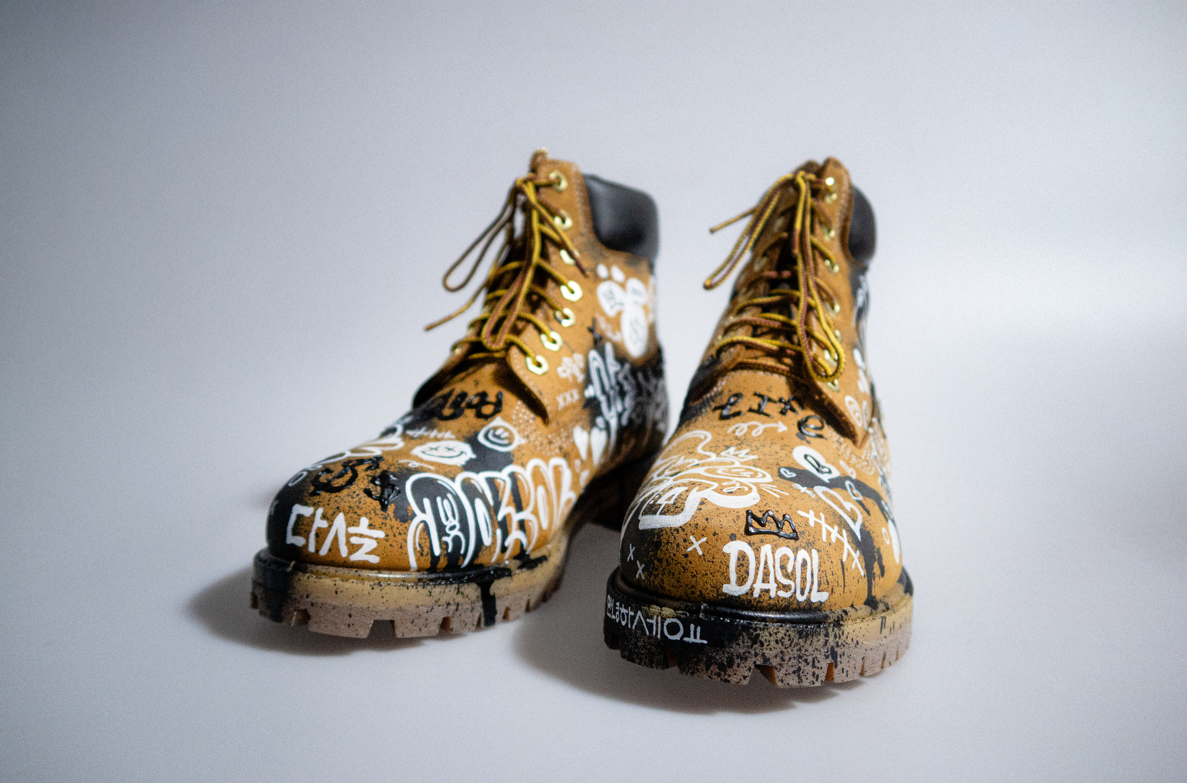팀버랜드의 시그니처 옐로 부츠 위에 한글과 영어 두들링 아트웍을 진행했습니다.